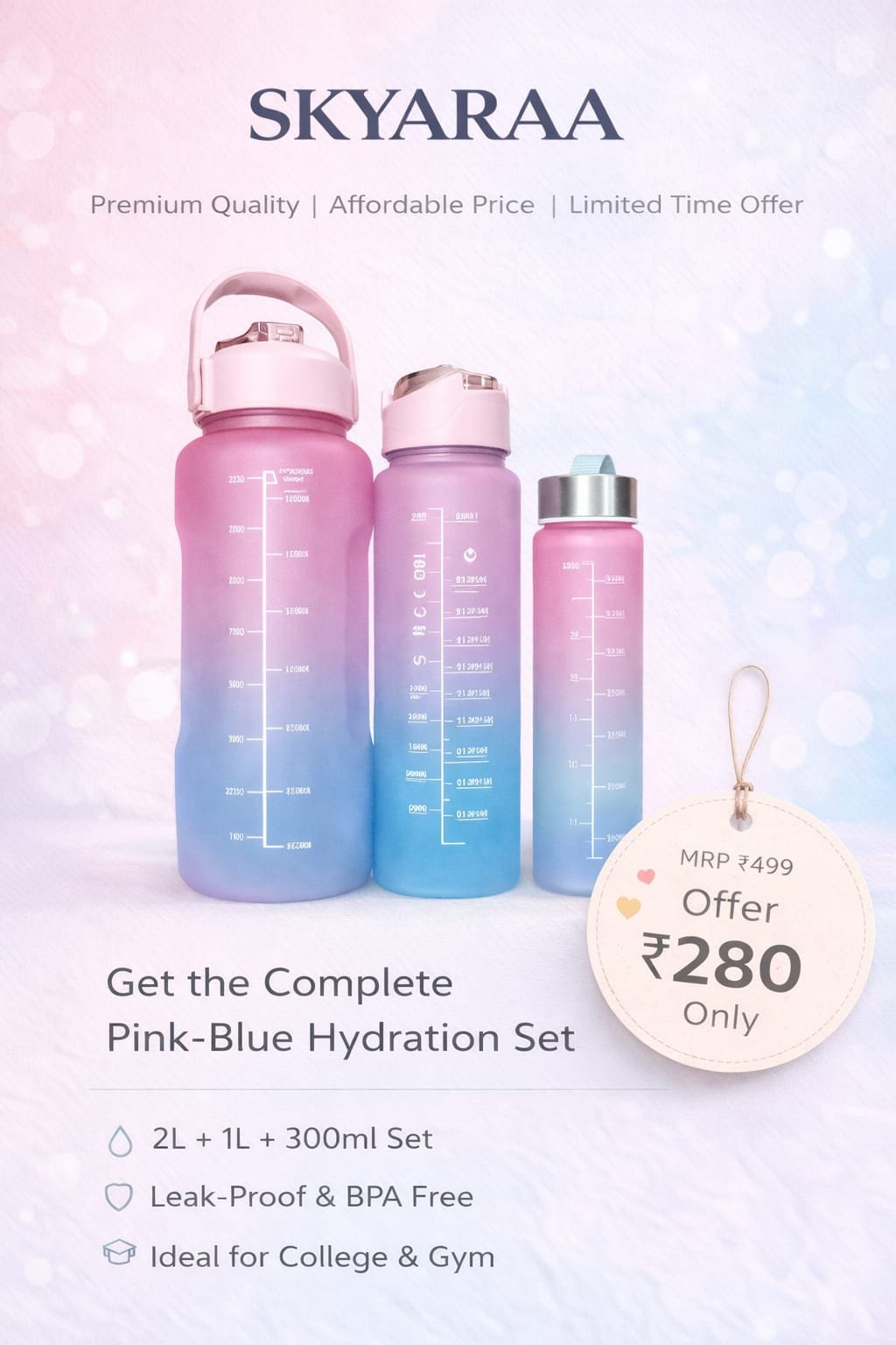 Premium quality at an affordable price — the complete hydration set for your everyday needs.